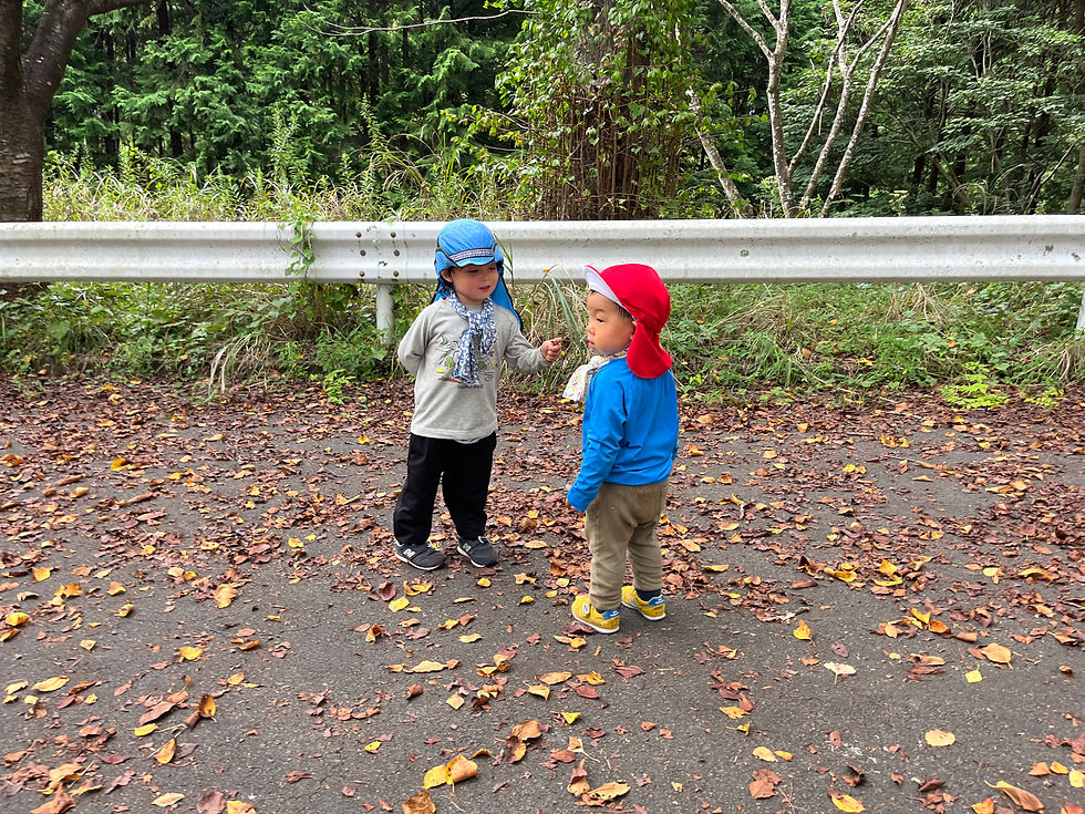 後ろでゆっくりゆっくり歩みを進める2歳の子たちも頑張っている。